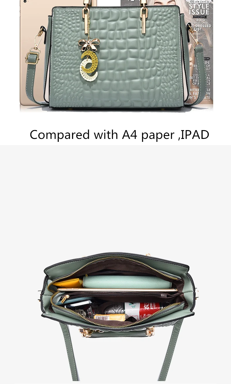 Alligator Top-Handle Bag Large Capacity Leather Handbags