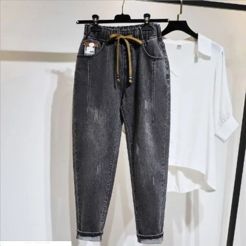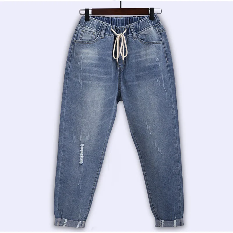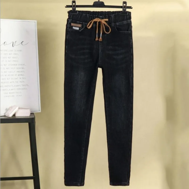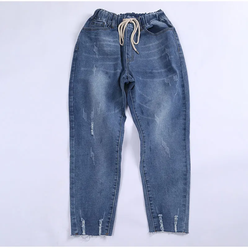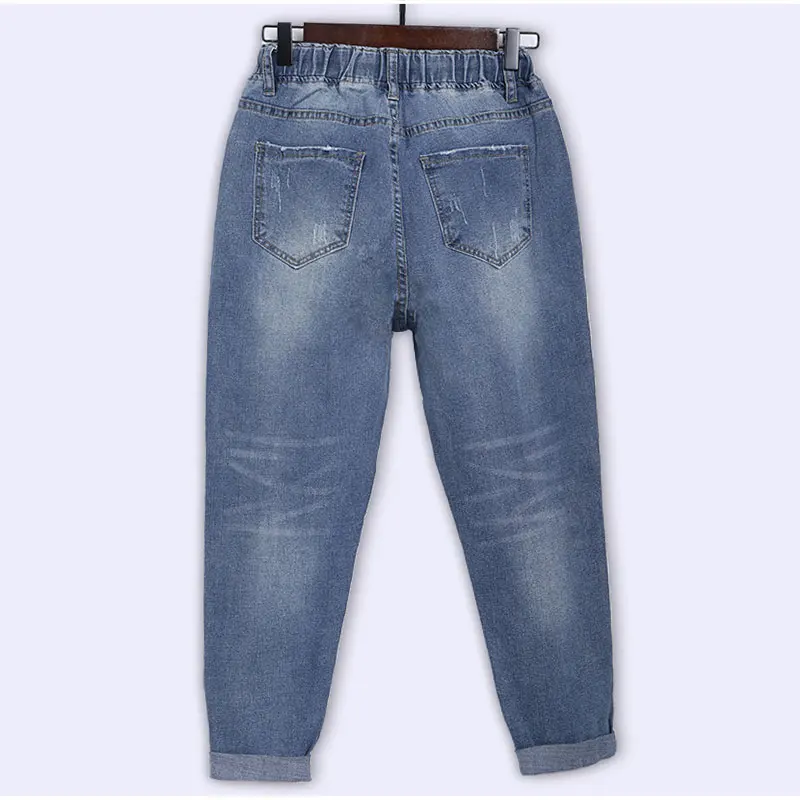Put the jeans straight&flat then measure the two sides seam of the waist and hip ,