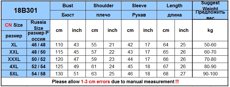 Model 1: Height 165 cm, Bust 112 cm. For this model, she wears acasual shirt ,size 2XL is just fit.