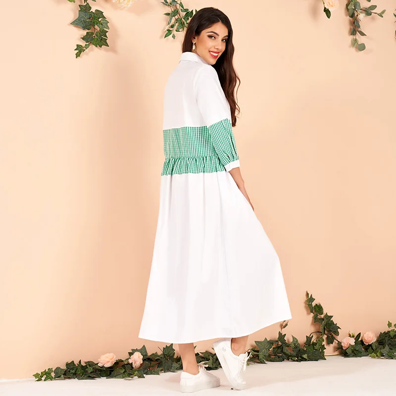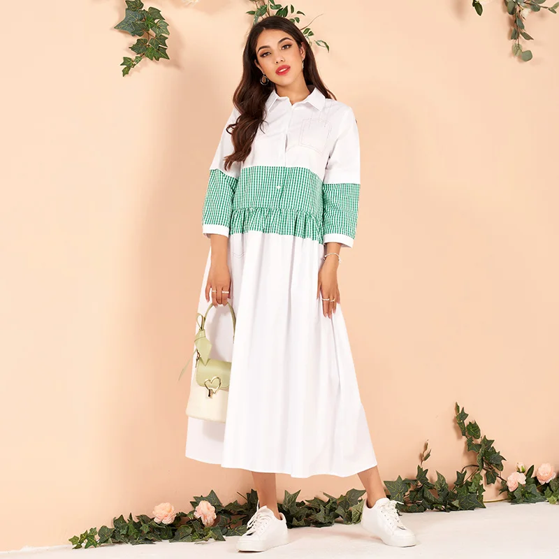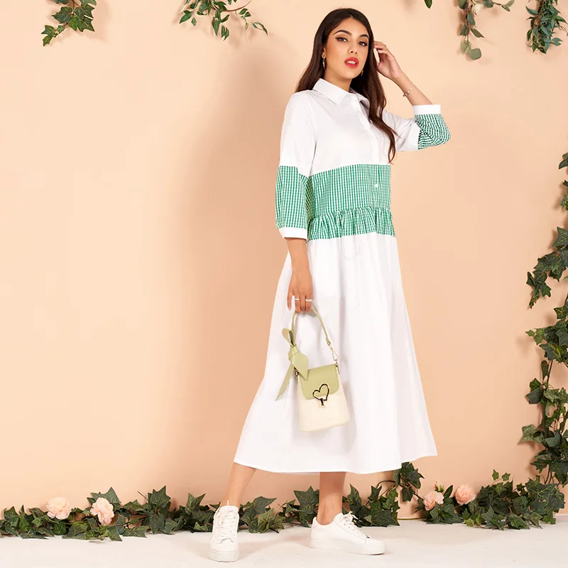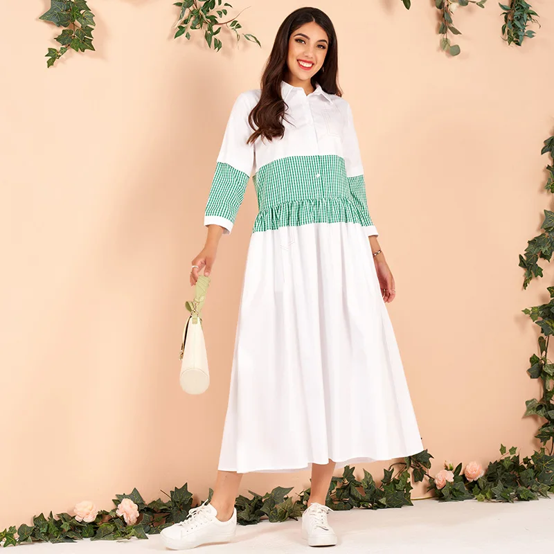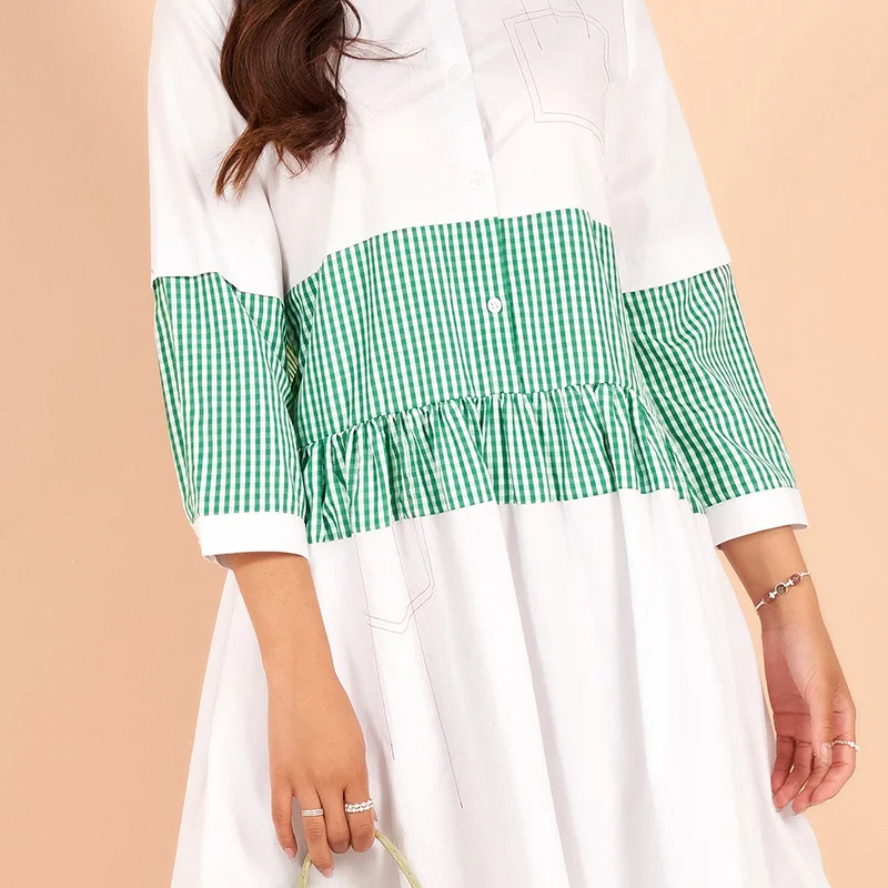 pure cotton white green matching plaid