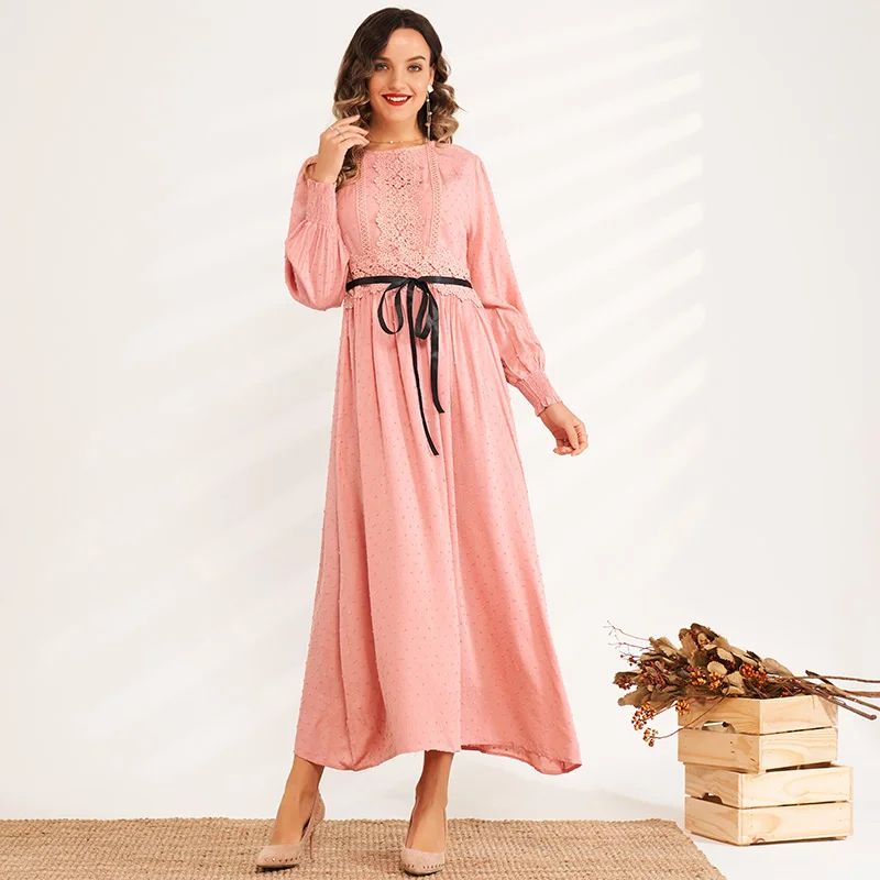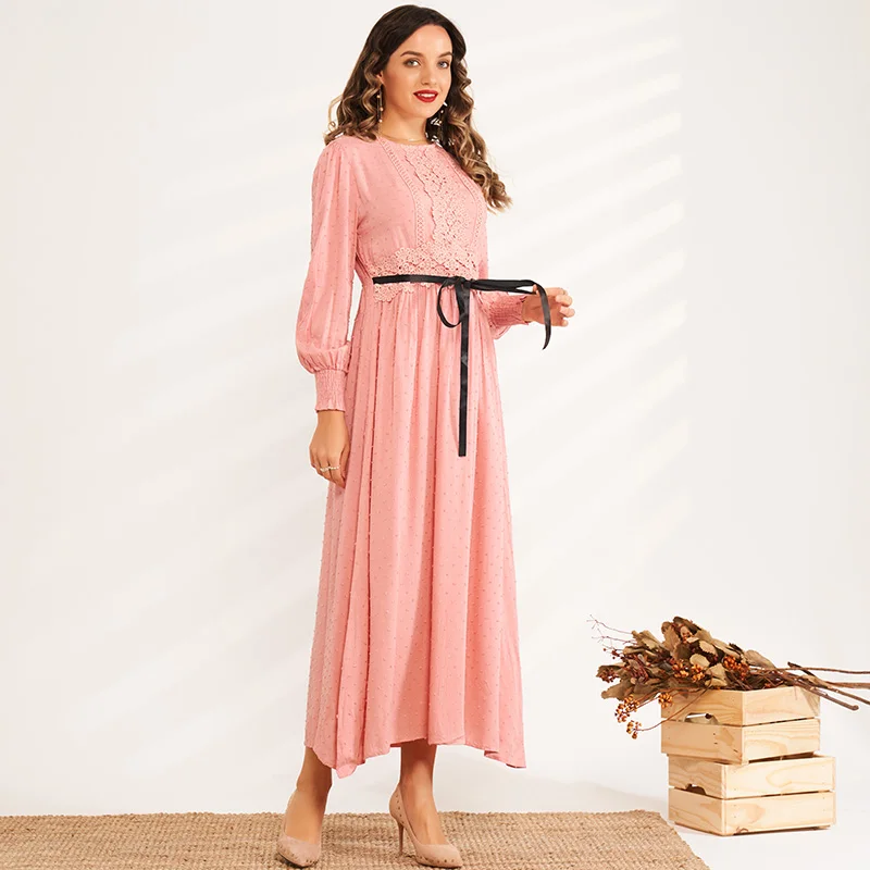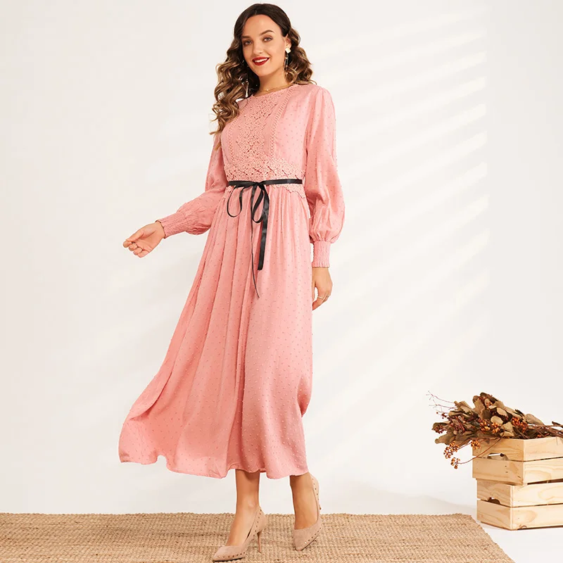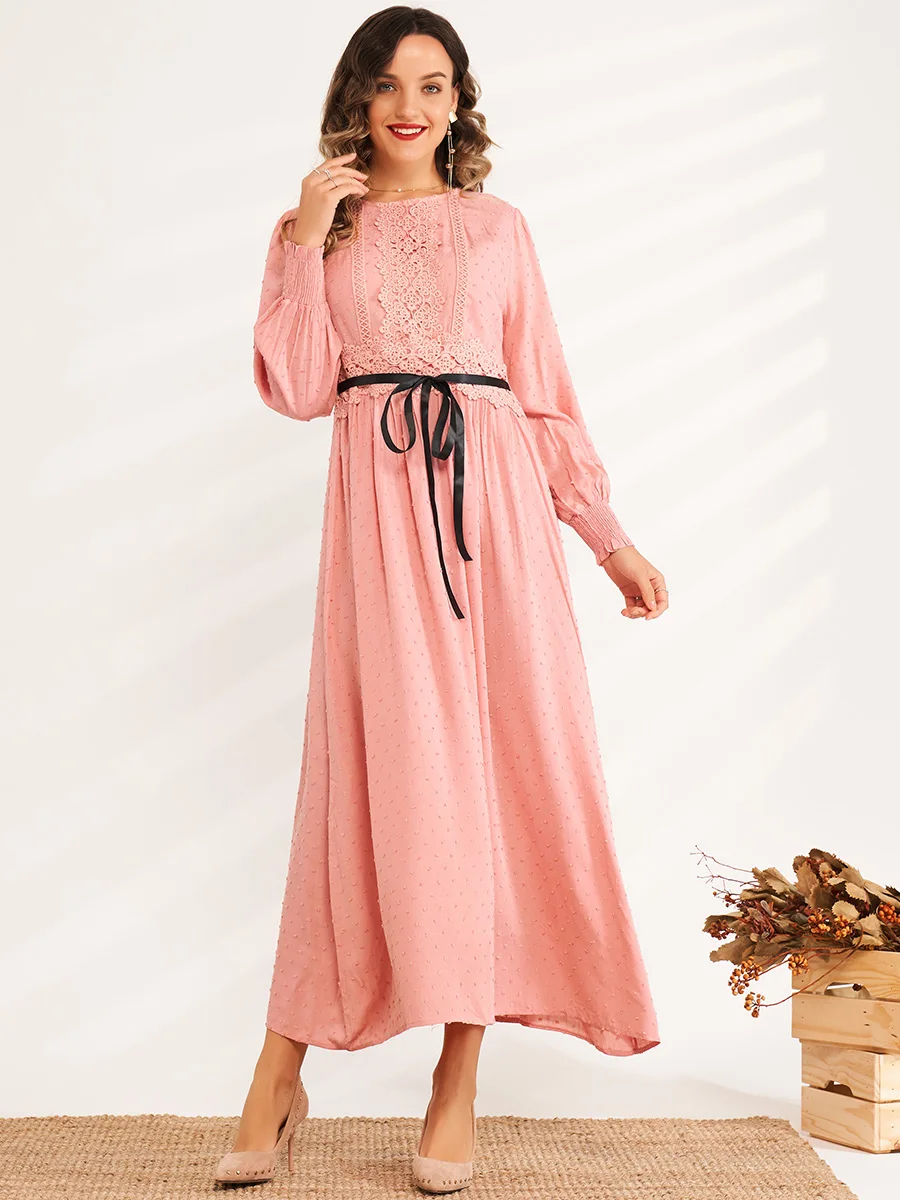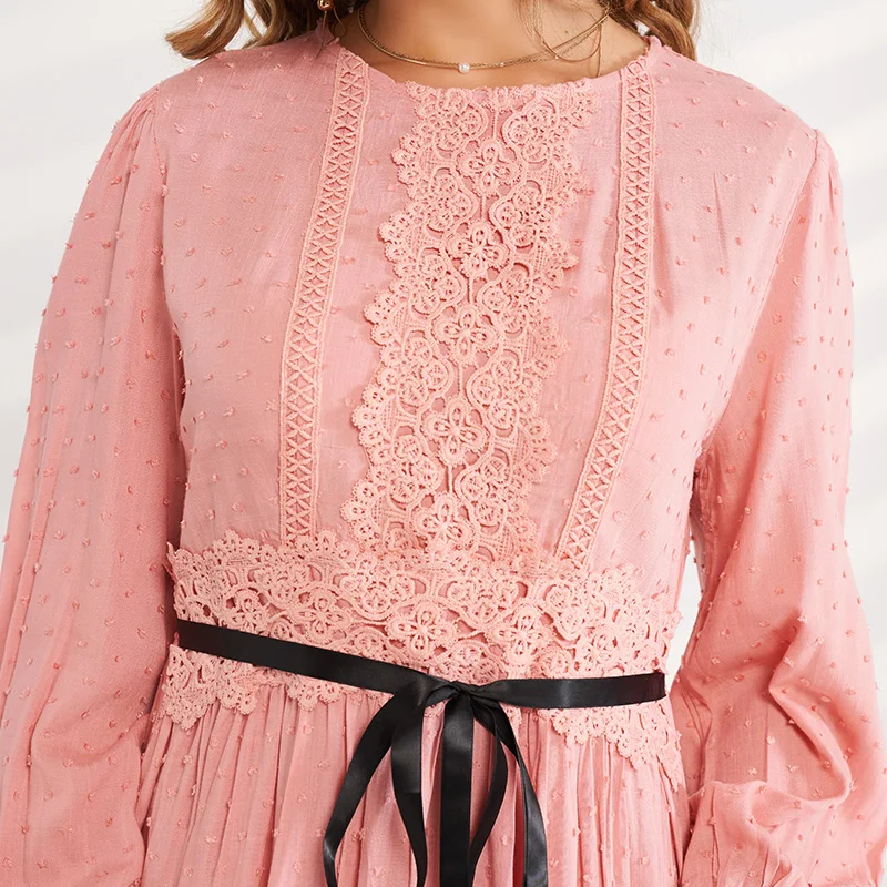 Round neck jacquard lace stitching high waist Slim-fit