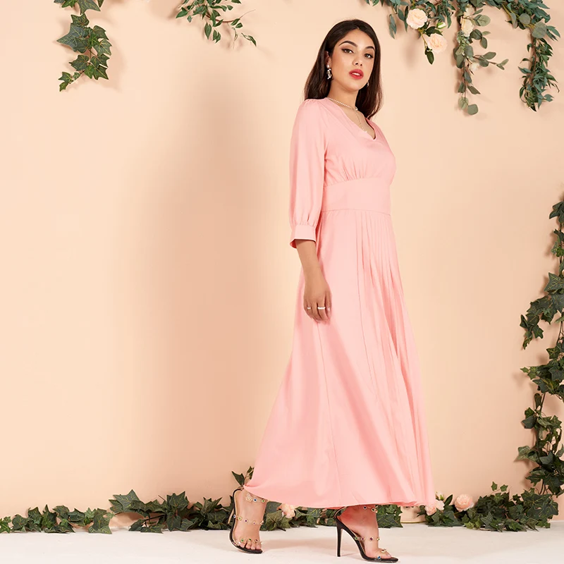slimming pleated cotton feeling casual mid-sleeved