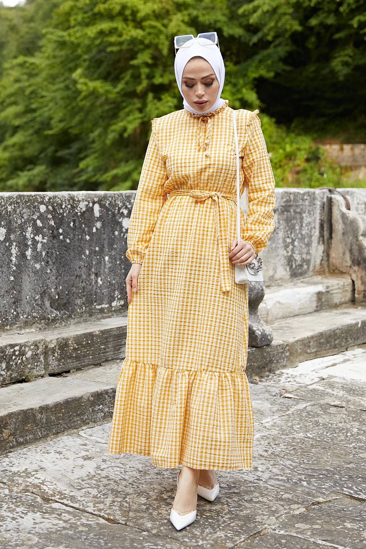 Belted Ruffle Detailed Dress
