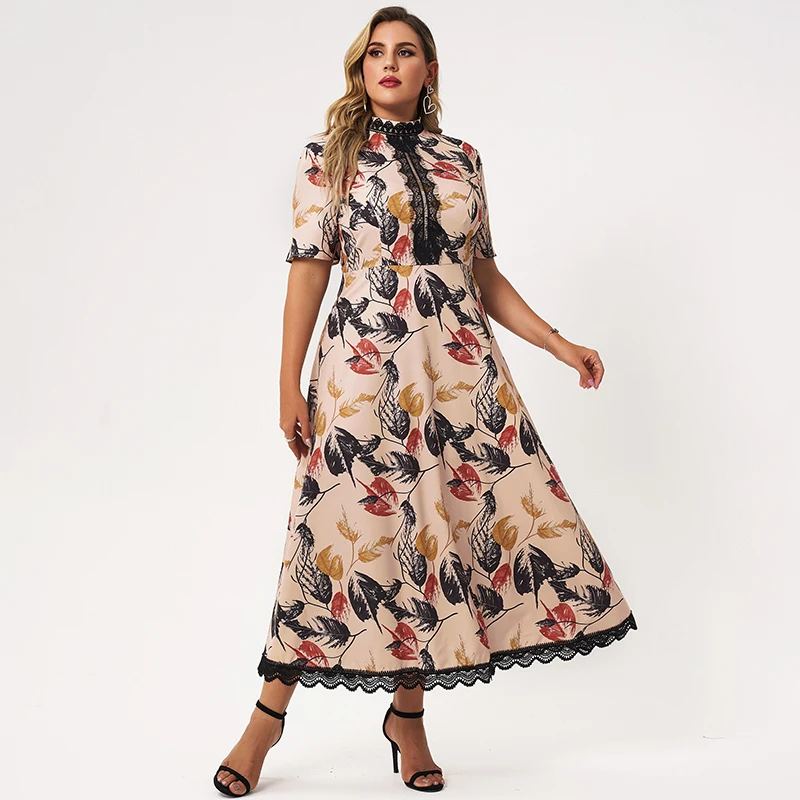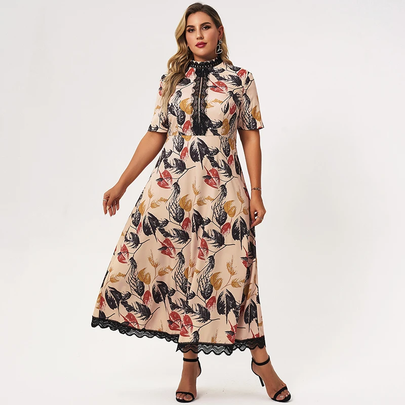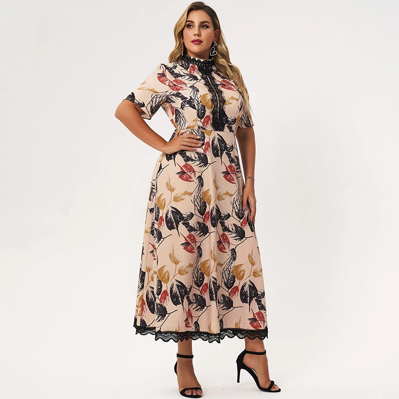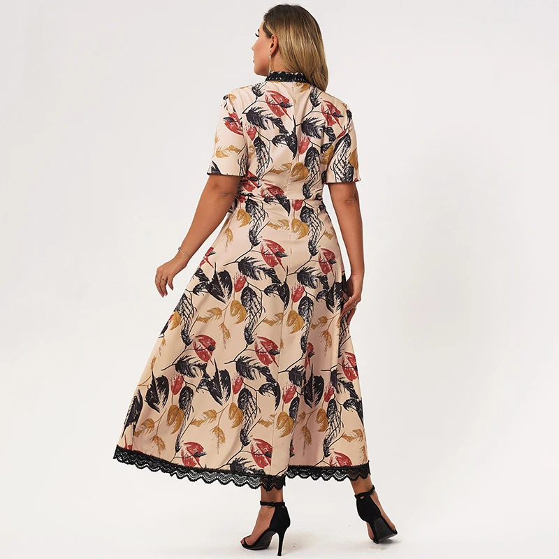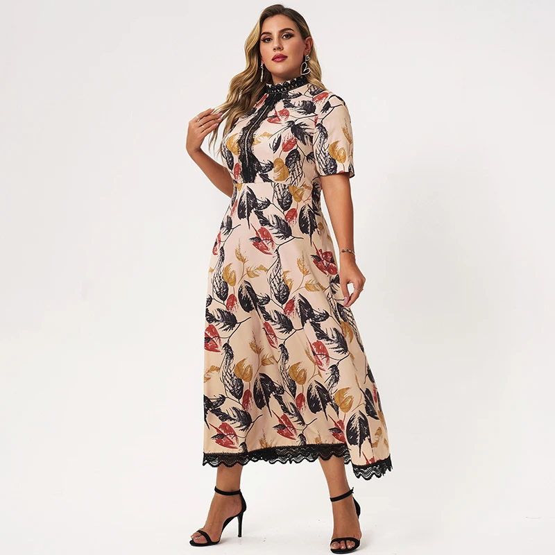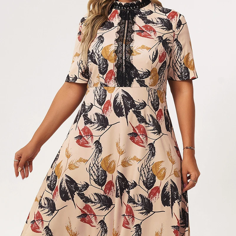 leaf print lace Patchwork short sleeve