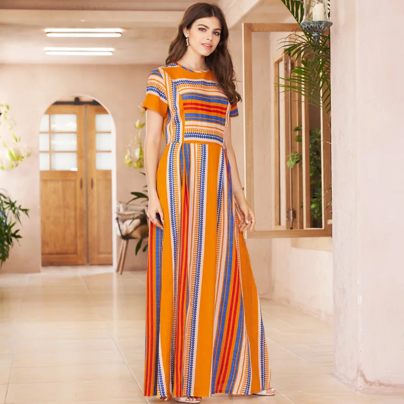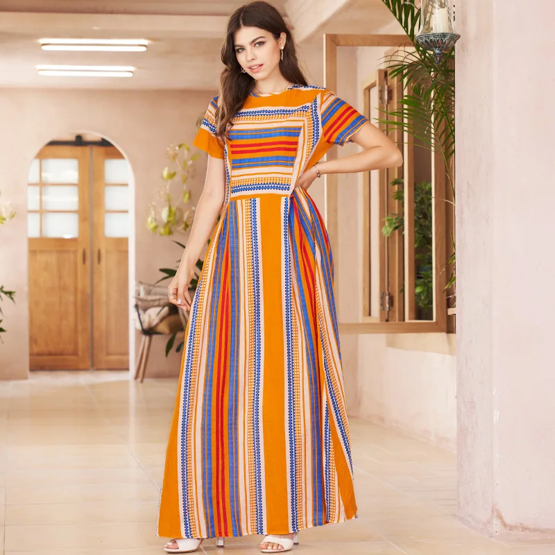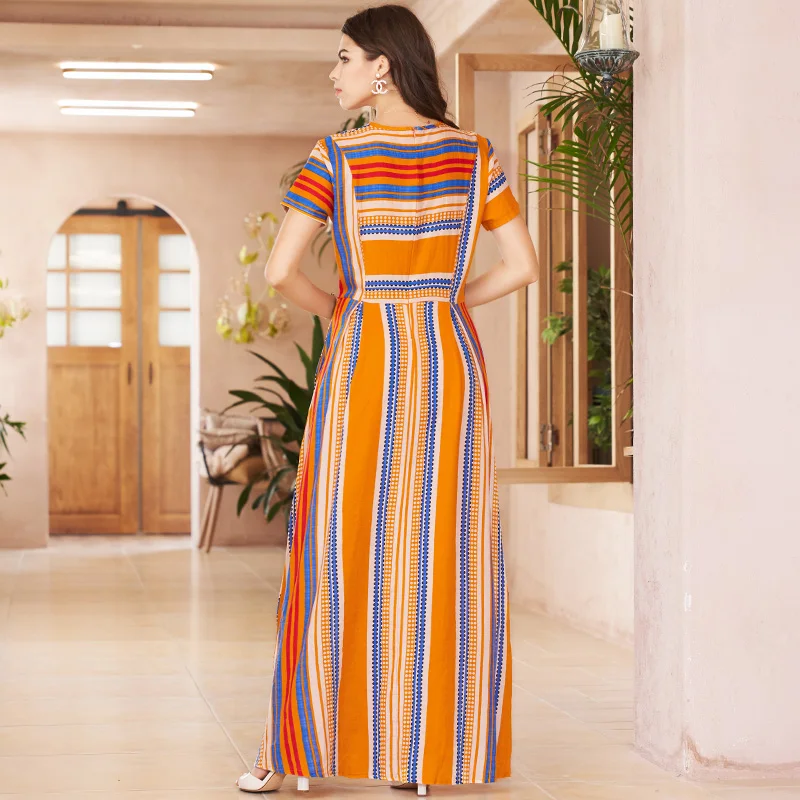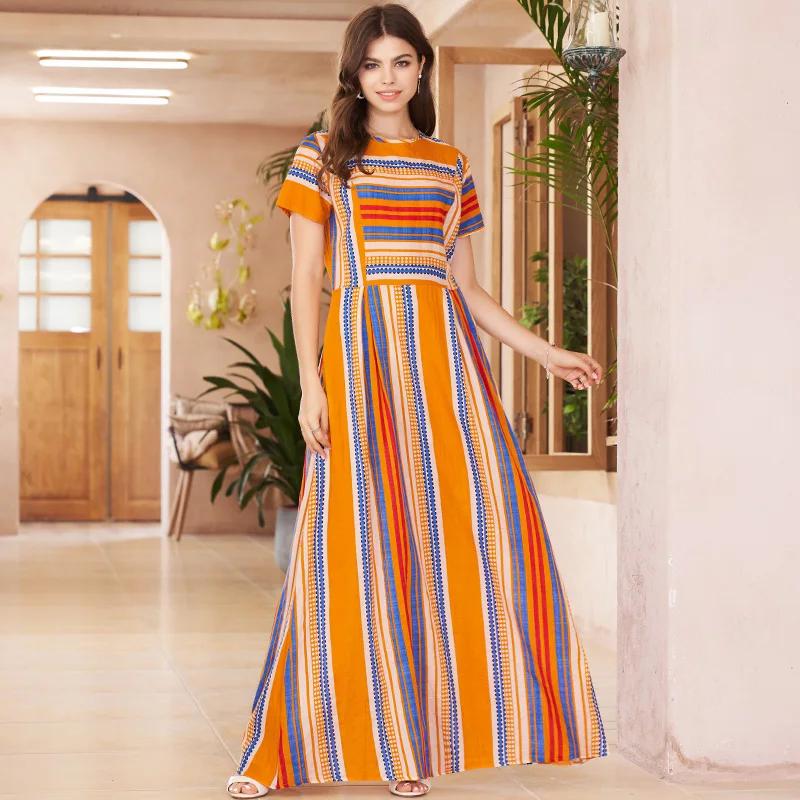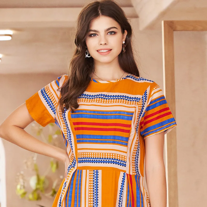 cotton and linen print wide striped round neck