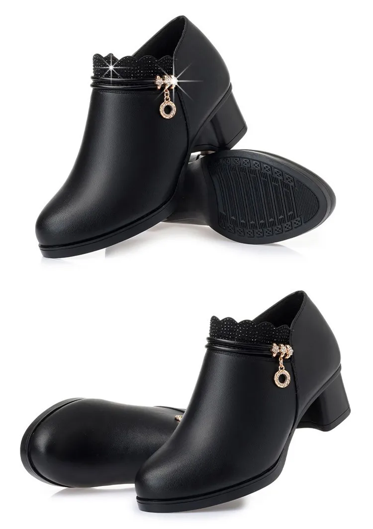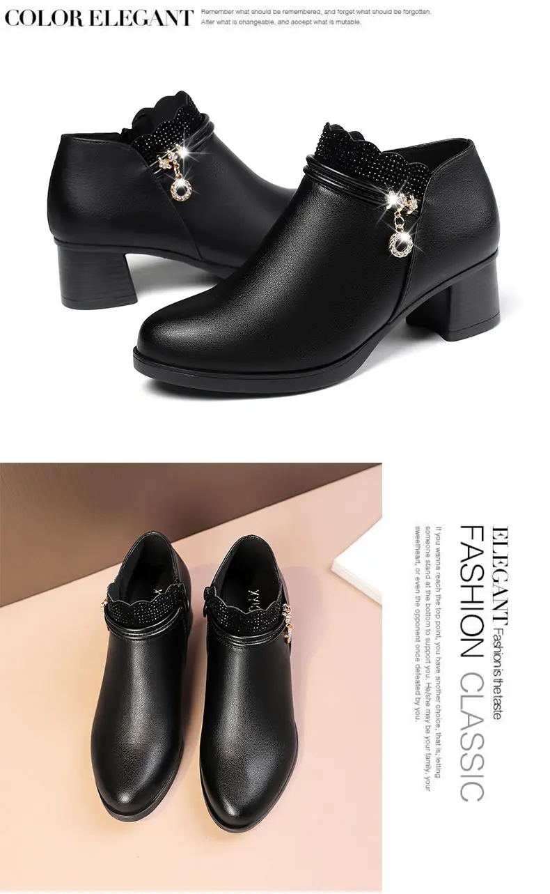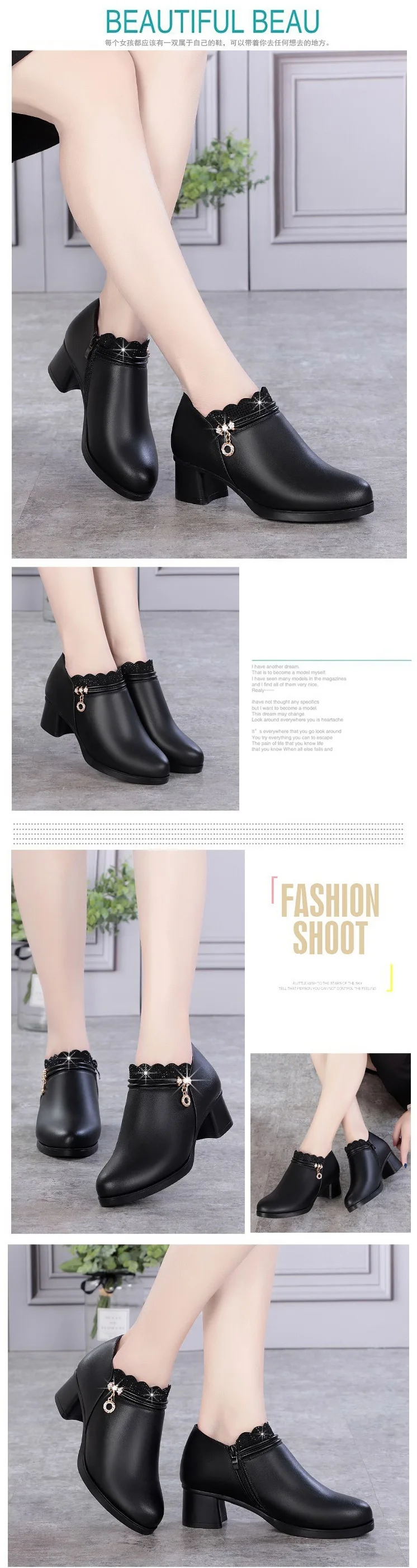 leather zipper thick high heels 5cm